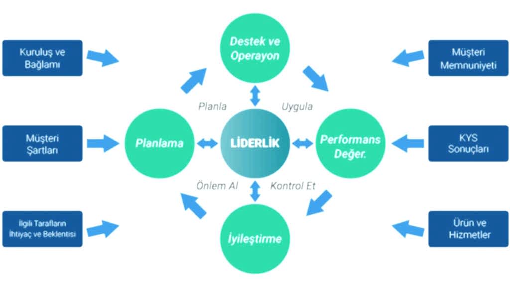 • Kalite Yönetim Sistemi ve Kalite Hedefleri’ni müşteri şartlarına uygun olarak belirlemeyi, duyurmayı ve gelişime açık alanlarını tespit etmeyi, verimliliğin artırılması için düzenli olarak gözden geçirmeyi, raporlamayı ve sürekli iyileştirmeyi,